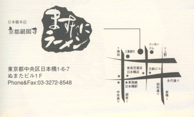 もうひとつ、最近食べて美味しかったのが『ますたにラーメン』です。東京の日本橋へ洋食屋『たいめんけん』を探しに行ったとき、ここが休みだったので、たまたまその手前にあったラーメン屋に入ったのが味を知ったきっかけでした。とんこつ風のラーメンでしたが、だしがしっかりしていて、細い麺にからんで良い感じでした。載っている具も良く考えられており、チャーシュはあっさりの固めなのですが、薄くカットされているため、柔らかい食感で美味しかったです。店員さんは全員ワイシャツにネクタイという格好で、サービスも良かったです。是非また行きたいと思っています。