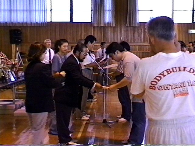 表彰式です。私は優勝ということで金メダルと賞状をいただきました。