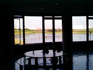 公園内にあるネイチャーセンターからは、干潟が一望でき、室内からのんびりと野鳥の観察ができます。この時期は、渡り鳥であるシギ・チドリが多数飛来しているため、今日はこのネイチャーセンターに腰を据えてバードウォッチングすることにしました。