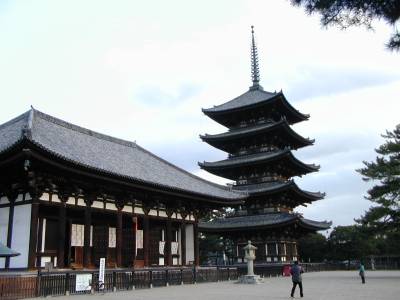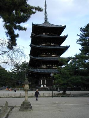 奈良公園の入り口に、有名な五重塔がありました。何度か焼失しているらしく、再建したものとのことでしたが、1300年前の動力も計算機もない時代にこんな大きな建物を建築する技術があったことに、まず感動しました。