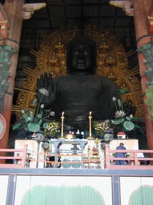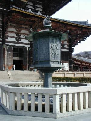大仏の納められている建物の前の灯篭です。唯一、この灯篭だけが建立当初から残ったものとのことでした。他の建造物は、何度かの焼失を繰り返してきたようです。