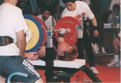 1998年全日本パワーリフティング大会でのベンチプレスの様子です。