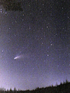Next week, the comet could be seen a couple of times from the west window of our home. After the comet was identified with a binocular, it could be seen very faintly with the naked eye. Everytime we saw it, the tail became more vertical, suggesting that relative position of the comet with the sun was changing rapidly. Apparently the comet was going away. We thought so until we, Sue and Shig, went to Mt. Yatsugatake again on April 19 for a overnight stay there and saw the comet. The comet was still big there in the dark sky. The sky in Mt. Yatsugatake is so different from that in Tokyo or Hachioji.