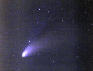 2月9日早朝、清里の上にある「まきば公園」まで行き、-6度の雪の中で初めて水滴状に青く光るHale-Bopp彗星を見ました。丁度「矢座」のやじりの位置で火矢のようでした。