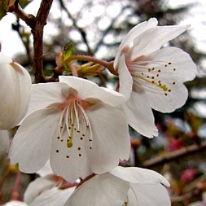 | 高嶺桜=峰桜 | 白く中央が桃色 | 比較的下向き | 紅紫/褐色 | 先端が伸長 | 紫褐色 |