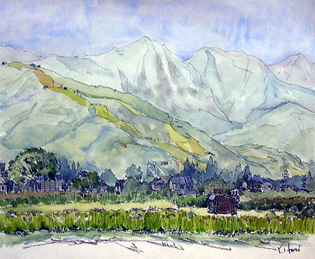 昔は良く八方尾根や栂池へスキーに行ったものです。白馬連峰はどこから見ても絵になります。スケッチの合間に点在する温泉に入る楽しみもあります。