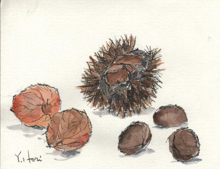 秋の名残の自然ドライフルーツランダムに並べて描きました。パソコンの変換でわかりましたがほおずきは鬼灯や酸漿と書くようです。