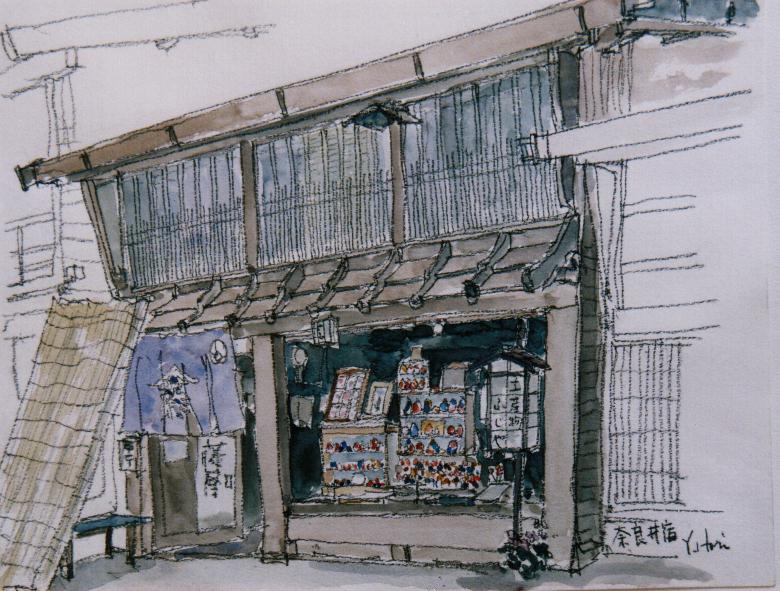 藤屋は創作民芸品を売っている店で、ユーモラスなからくり人形やおとぎ噺シリーズになった土人形がカラフルに店頭を飾っていました。