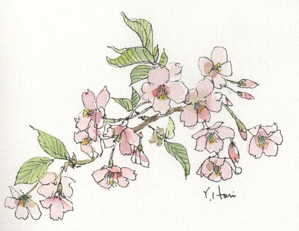 桜の花シリーズを作ろうかと近所の公園の桜もスケッチしました。なかなかピンク色の花の色を出すのは難しいものです。
