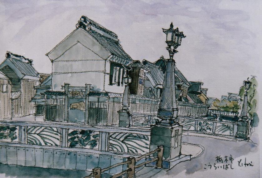 とちぎも蔵の多い町です。町の中を流れる巴波(うずま)川沿いの黒塀と家並みは江戸の情緒を感じさせます。幸来橋のたもとの建物は昔の木材回漕問屋で今は歴史記念館になっています。