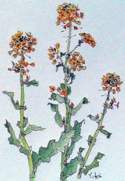 スケッチの題材を求めて、よく植木店や花屋に立寄ります。温かい部屋に置いておくと、蕾が次々に開花します。菜の花やポピーは今が旬のようです。 最近、SMサイズ以上の絵はデジタルカメラでとり、Photoshopのレベル自動調整で処理しています。若干、現物より色が鮮やかになっているようです。