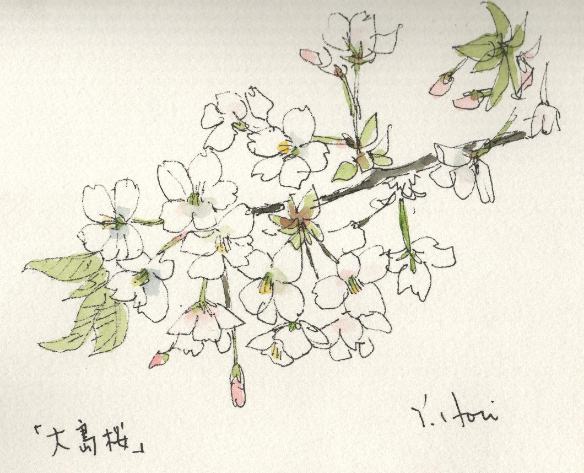 これも早咲きの桜のようでした。ほとんど真っ白な花びらです。気候のせいか花の性質なのか葉も同じに出ていました。