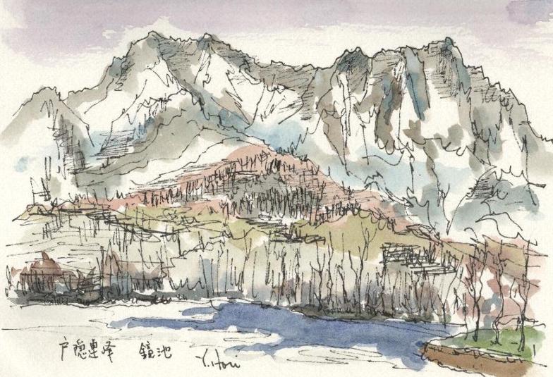 長野から戸隠に向かう途中の山道は丁度桜が満開でした。だが、戸隠連峰をうつす鏡池にはまだ氷が残っていました。湖畔でのスケッチで体が芯から冷たくなり、名物の蕎麦で人心地がつきました。