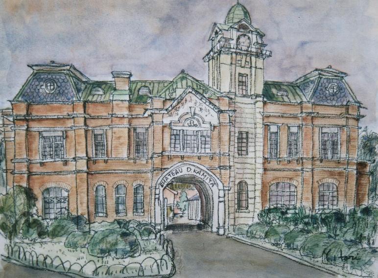 我が国で企業として初めて本格ワインの製造・販売をしたのは神谷酒造を興した神谷伝兵衛で、牛久村にフランスから輸入した6000本のブドウの苗を植えたそうです。華麗なフランス風レンガ建築はその当時の醸造場であり、中央入口上部アーチにはCHATEAU D・KAMIYAと刻まれています。