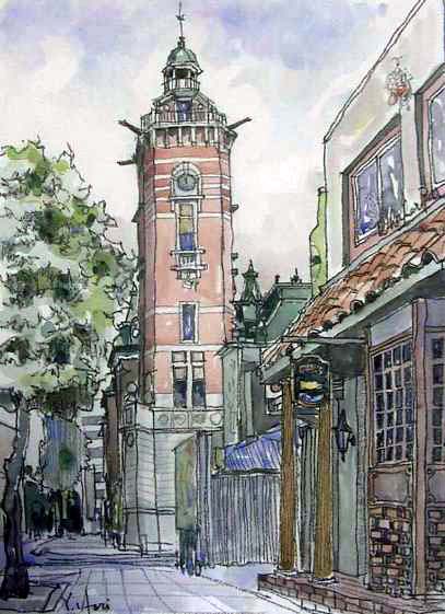 絵画仲間で先輩のSさんがこの構図をスケッチされていました。シーフードレストランとクラシックな開港記念館の組み合わせがいかにも横浜の風景です。レストランの味も楽しみたかったのですが、オープンは午後5時からで断念しました。