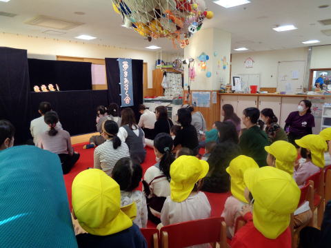 久方ぶりに開いた集まりだそうです。お子さんを抱くお母さんの、穏やかな笑顔が印象的でした。人形劇の力を感じます。「もっと集まりを開きたいんですよ」「コロナはもうそろそろ、大丈夫そうですね」職員さんとの会話です。