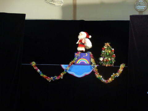 「お話玉手箱」のみなさんとは、長~いお付き合いです。20年以上ですかね。失敗しても慰めてくれます(*^-^*)。毎年変わらずのクリスマス会ですが、その変わらないというのが良いですね。客席の飾りつけも少しずつ足したり引いたりしながらのサンタさん人形です。会うとホッとします。「夢まあるく舎」の人形劇も、その仲間です(*^-^*)。