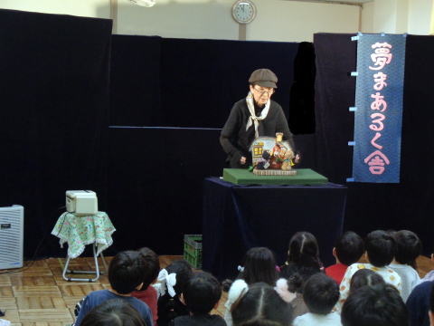 なんでも、子どもの自分に見たというお母さんが子ども連れで来てくれて、「昔と全然変わってないです。声も同じ!」と、職員さんに話してくれたそうです。ん?25年くらい前?もちろん、「夢まあるく舎」、そのころからこの作品やってますよ。